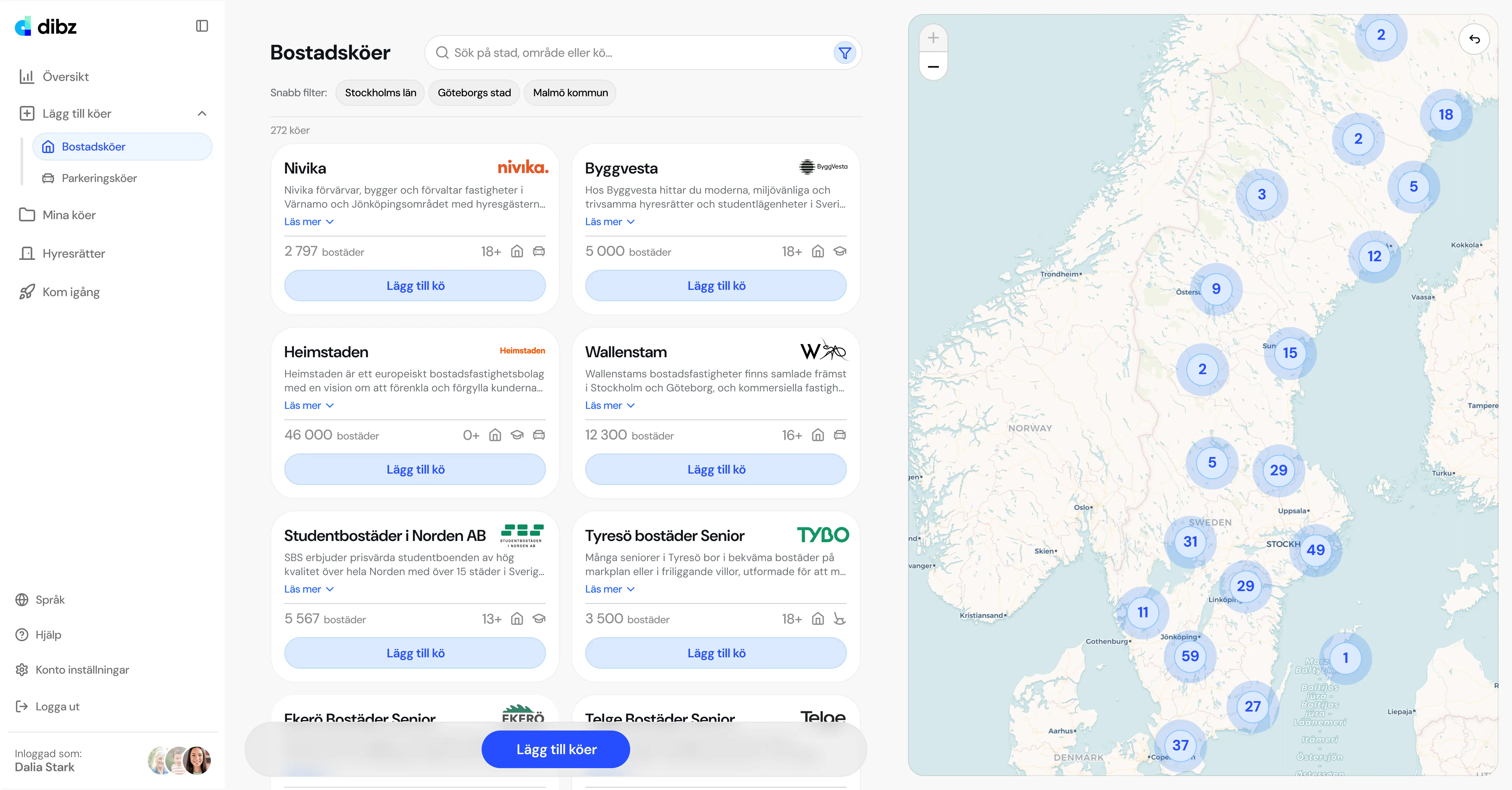 Our range covers all of Sweden. Student cities, large cities, and the countryside, everything is gathered on dibz.
